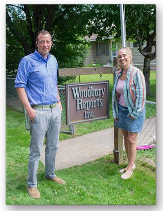 Lisa Sutton, founder of Sutton Enterprises, and Jason Cox, Director of Marketing and Admissions for Brightstone Transitions, recently stopped by Woodbury Reports and were the first visitors to get their picture taken by the sign since it moved earlier this month.